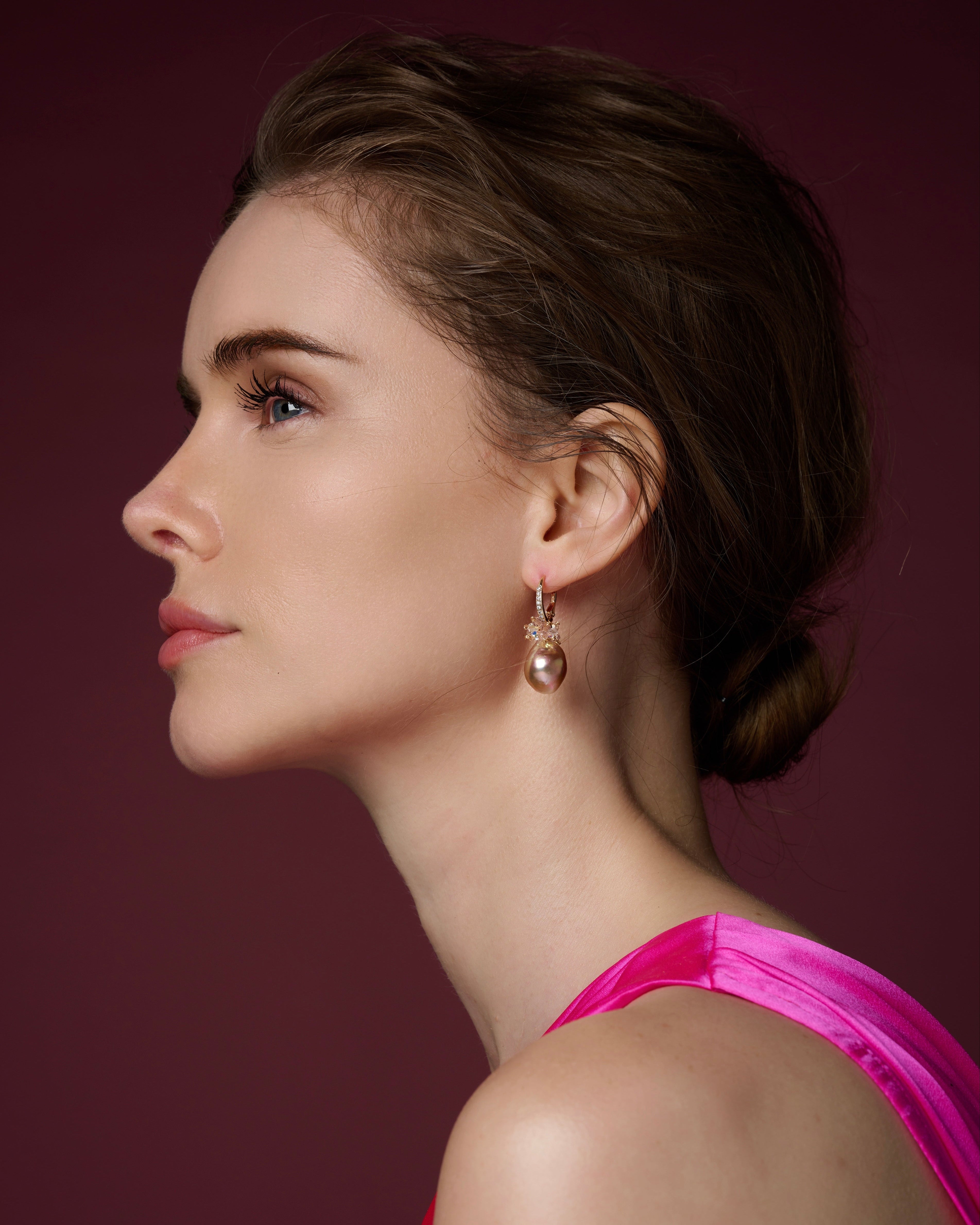 Ethereal Lilac Pink Gold Studs [8. One-of-a-kind]