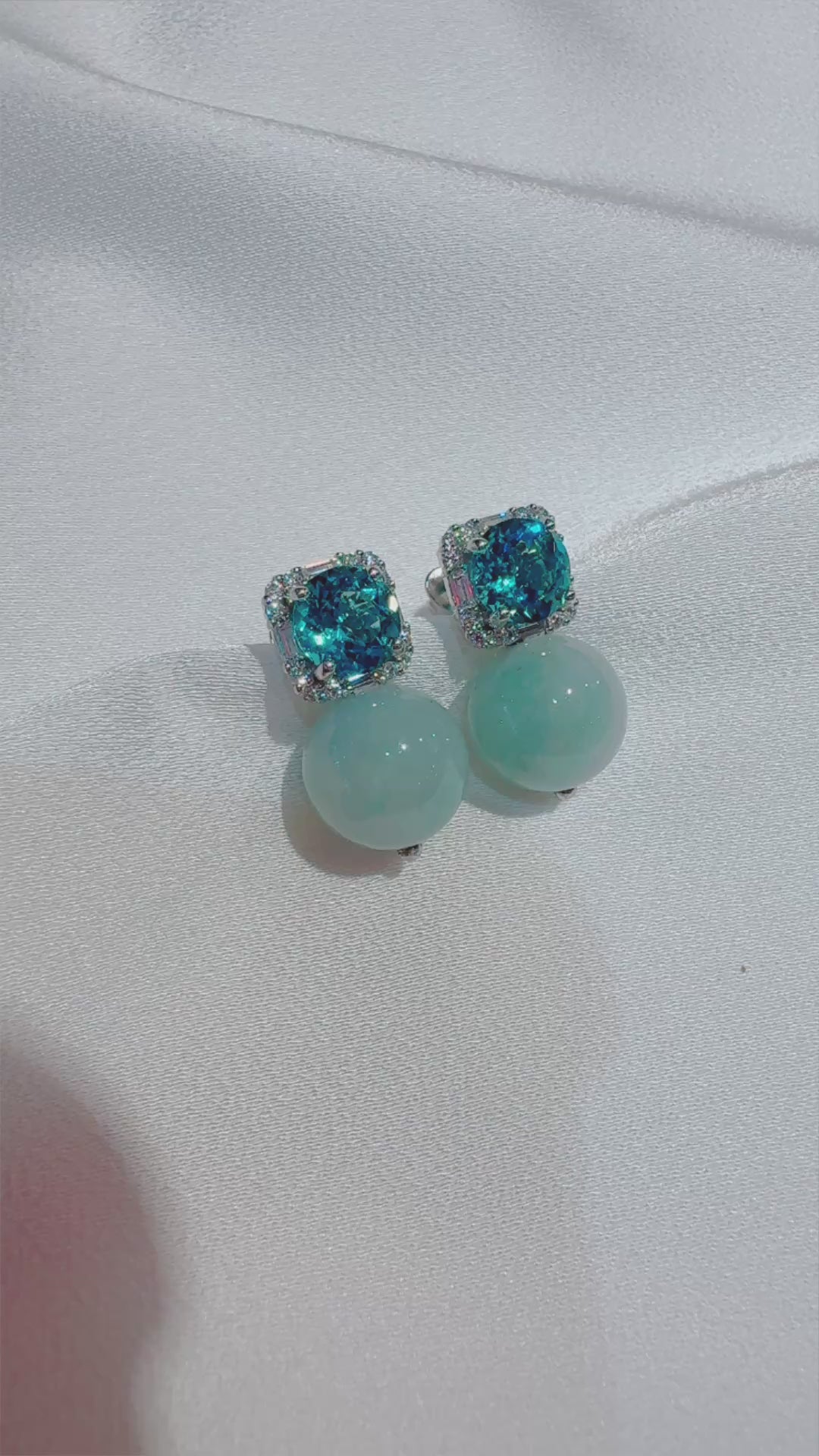 A cool blue-green glow that instantly lifts the face. These earrings bring a quiet polish to everyday dressing — effortless with crisp tailoring, soft knits, or fluid silks. Light-catching yet calm, they add freshness without overpowering, making them an easy choice for workdays, dinners, and refined occasions where you want to look considered, not overdone.