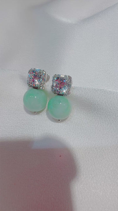 Crisp brilliance meets soft green calm. This pair brings instant light to the face — polished enough for evenings, yet effortless with daytime tailoring. The contrast between sharp sparkle and gentle translucence makes them feel fresh, modern, and quietly confident. An easy upgrade for work, dinners, and occasions where you want clarity and glow without excess.