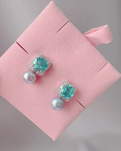 Cool, clean, and seriously eye-catching. Sparkling sky-blue sapphires light up these studs, framed by a crisp halo for extra shine. Finished with deep blue Akoya pearls for a rich, glossy contrast. Chic, fresh, and made to stand out — this is your easy statement pair.