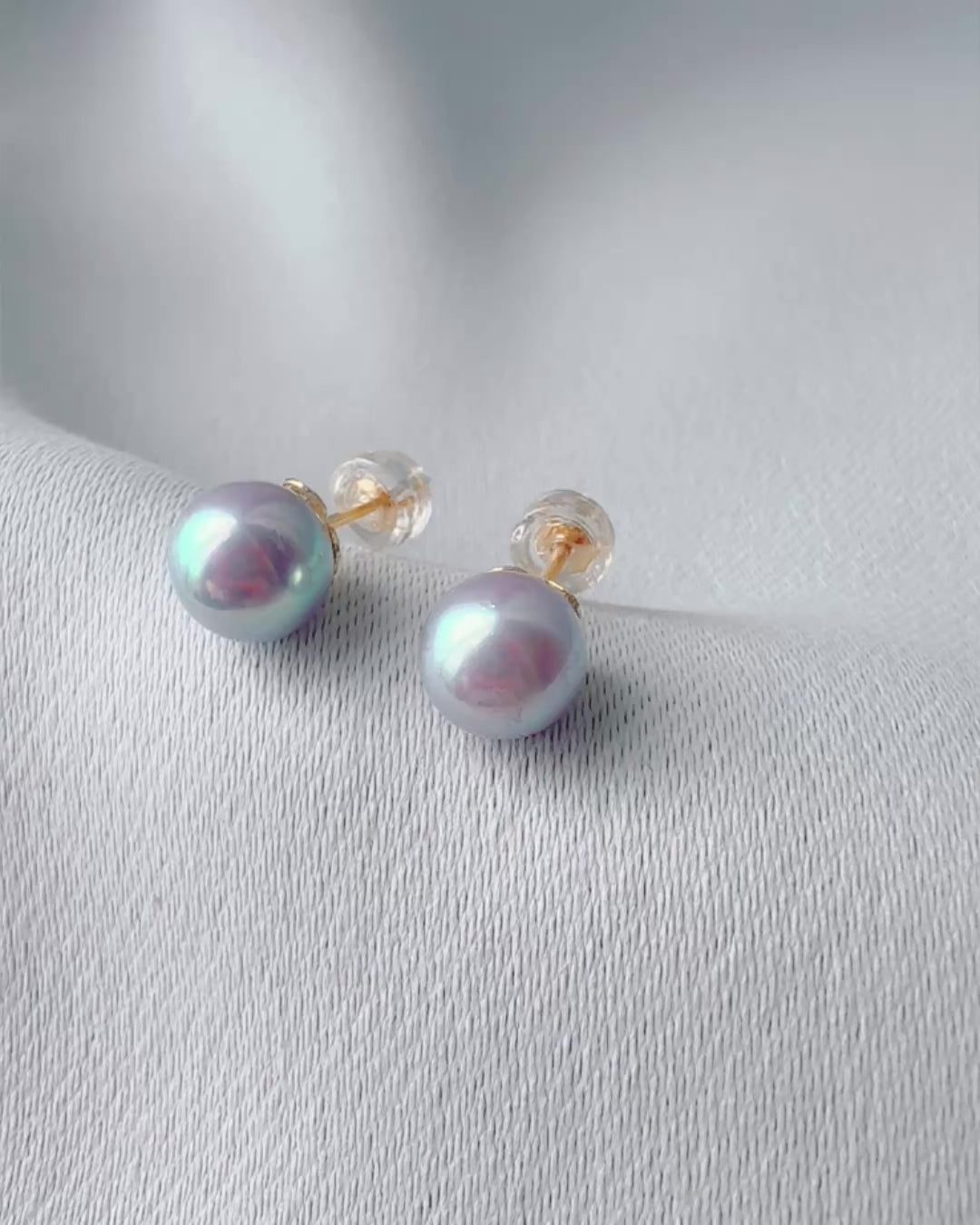 A timeless pair of classic blue Akoya pearl studs, selected for their exceptional lustre, smooth surface, and softly iridescent blue-lavender glow. Set simply to let the pearls take centre stage, they sit clean and elegant on the ear, reflecting light with every movement. Understated yet unmistakably luxurious — the kind of everyday essential that never goes out of style.