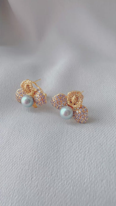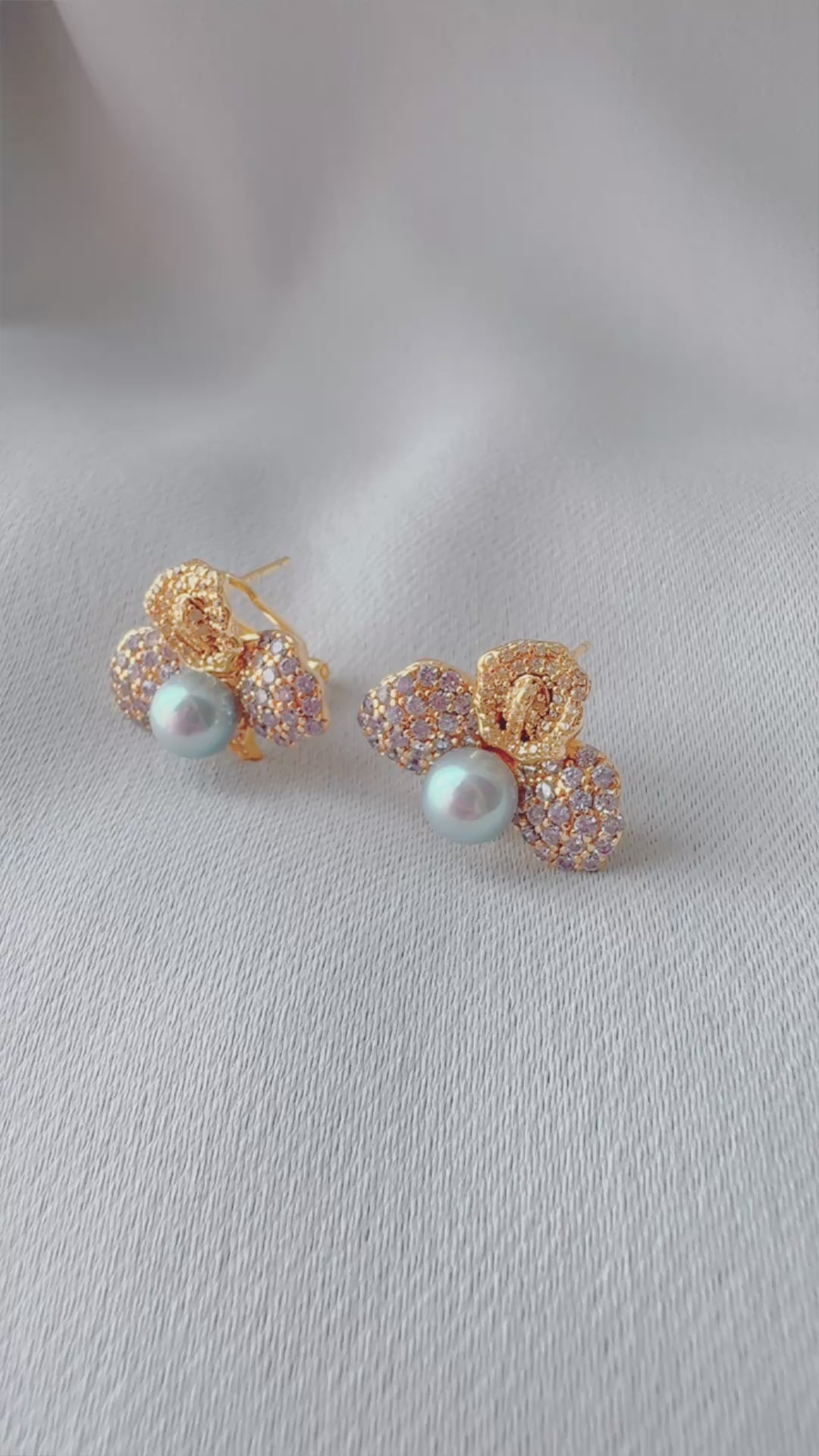 A soft interplay of light and texture — the Petale d’Or Earrings capture the charm of blooming petals dusted with morning dew. Each earring features a lustrous pearl nestled among pavé petals in gold and champagne tones, radiating quiet sophistication. The contrast of gold and light lilac adds depth, making them a versatile statement from day to evening. Perfect for women who love subtle glamour with timeless allure — an elegant ode to modern femininity.