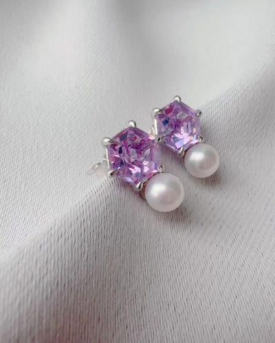 A precision-cut hexagon catches the light with sharp, architectural confidence, suspended above a smooth luminous drop that brings balance and calm. The contrast feels modern yet timeless — structured on top, fluid below.