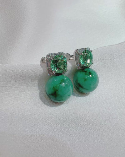 Crisp brilliance meets soft green calm. This pair brings instant light to the face — polished enough for evenings, yet effortless with daytime tailoring. The contrast between sharp sparkle and gentle translucence makes them feel fresh, modern, and quietly confident. An easy upgrade for work, dinners, and occasions where you want clarity and glow without excess.