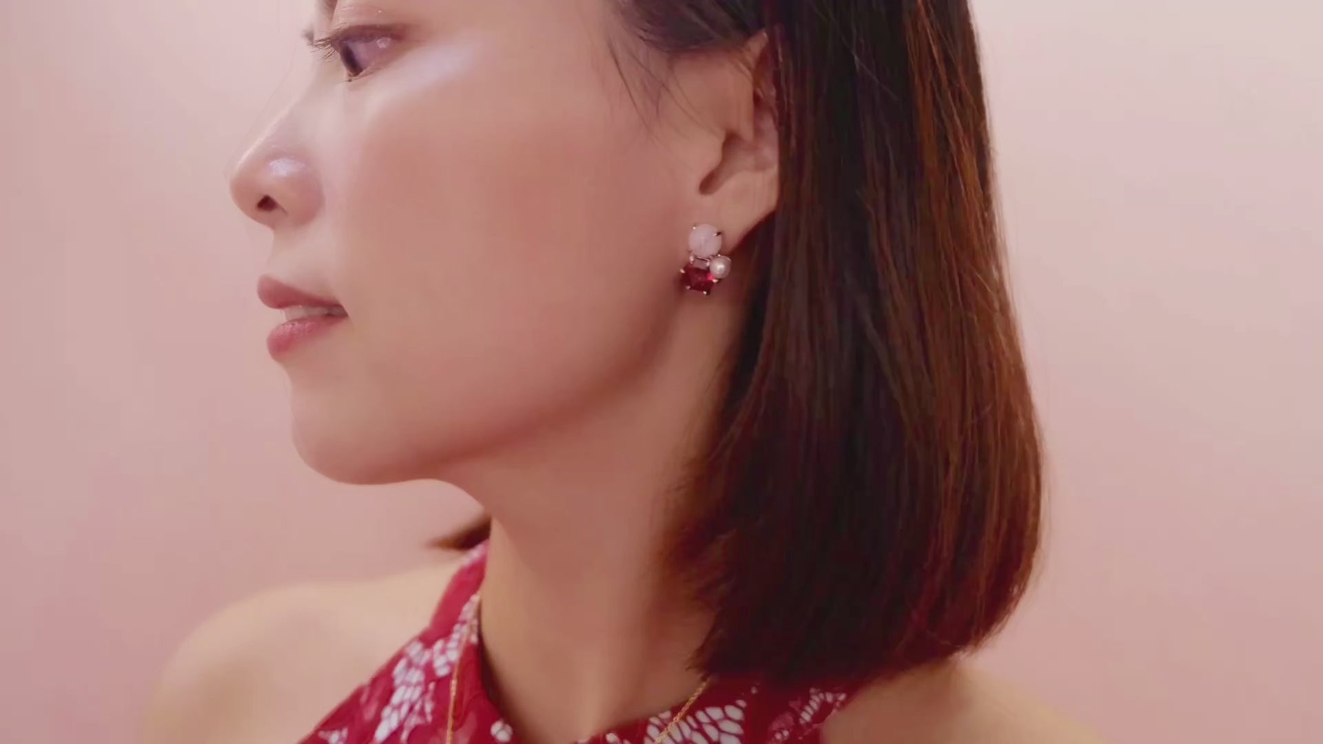 Soft blush cabochons sit at the top, glowing with a gentle, skin-flattering warmth. Bold yet compact, these studs balance sweetness with edge. The kind of pair that instantly sharpens a simple outfit and feels just as confident worn from day into evening.