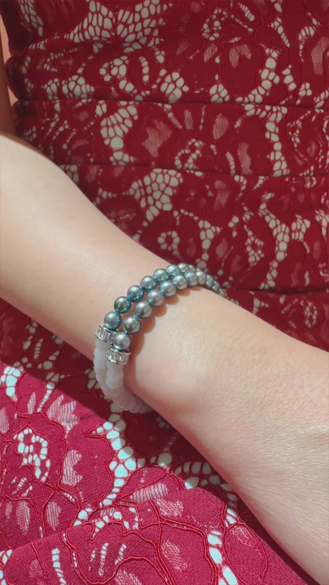 Fresh, fluid, and quietly striking. Icy white jadeite beads are paired with lustrous blue Akoya pearls, creating a clean contrast that feels modern and effortless. The cool translucence of jade softens the depth of the pearls, while pavé-set accents add just the right hint of polish. Easy to wear, easy to style — this bracelet brings a subtle pop of colour that lifts everyday looks and layers beautifully for a more styled finish.